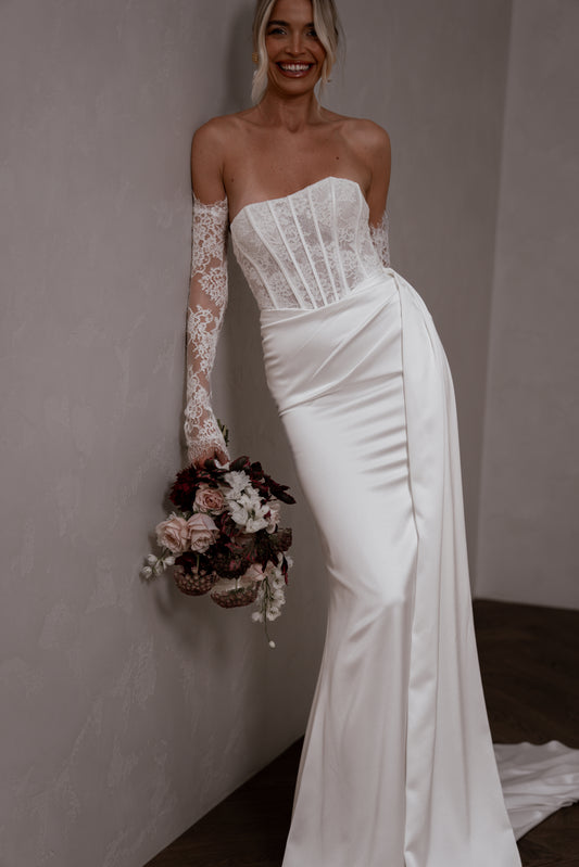 Vestidos disponibles en boutique. Agenda una cita para probártelos